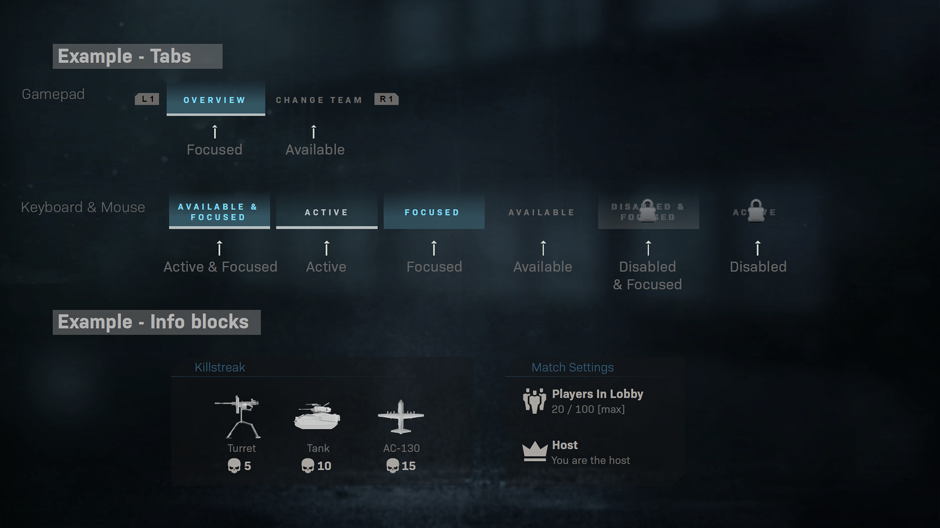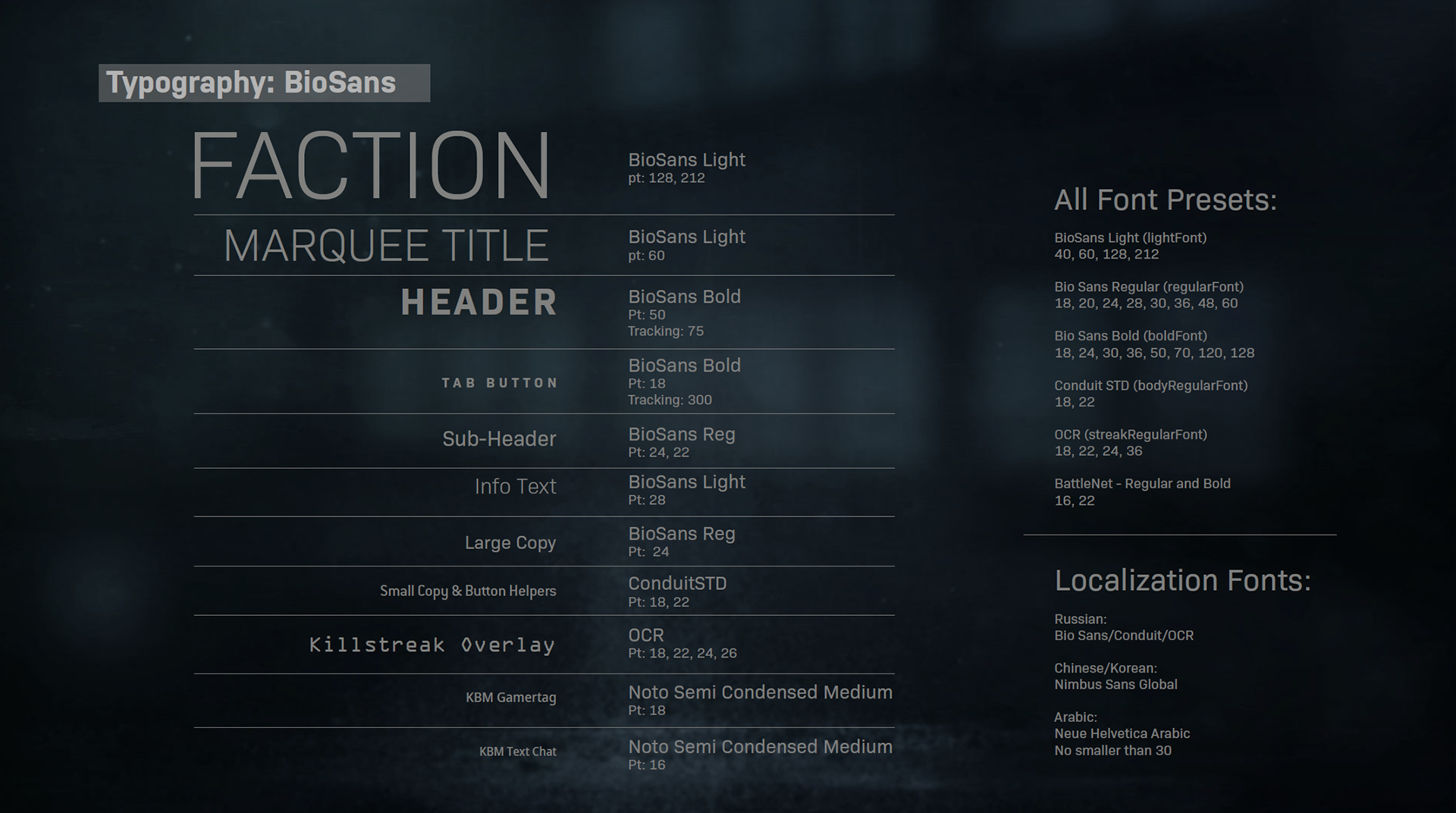 During the development of Modern Warfare, I was responsible for the UI Style Guide, a key piece of documentation on the UX/UI team.