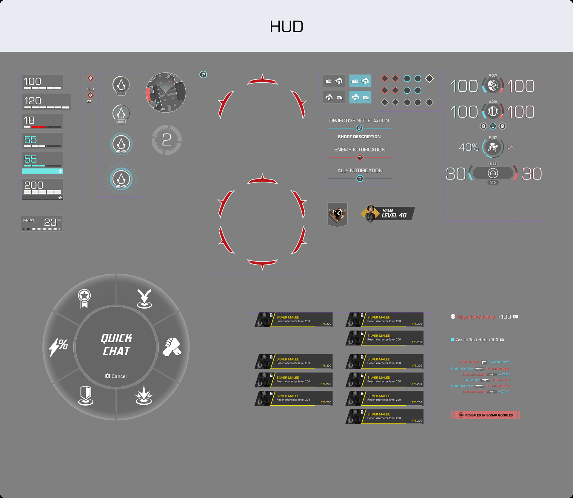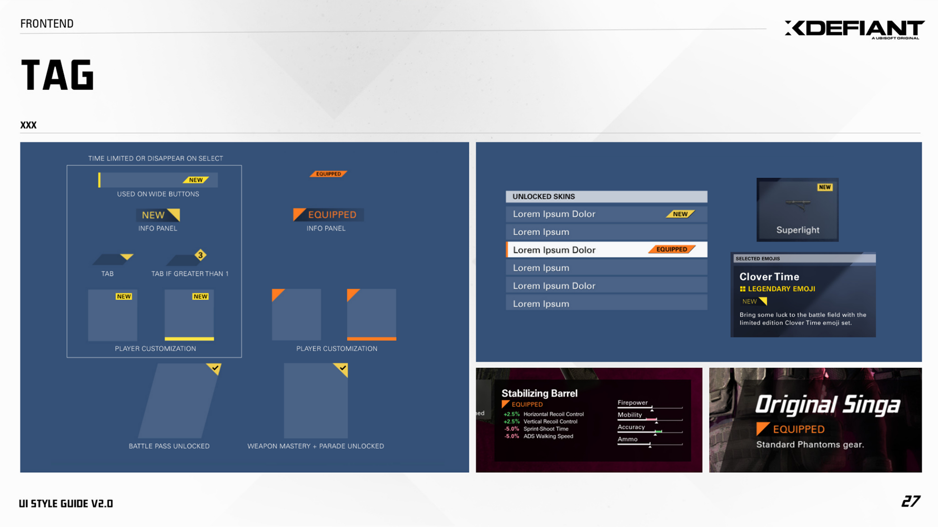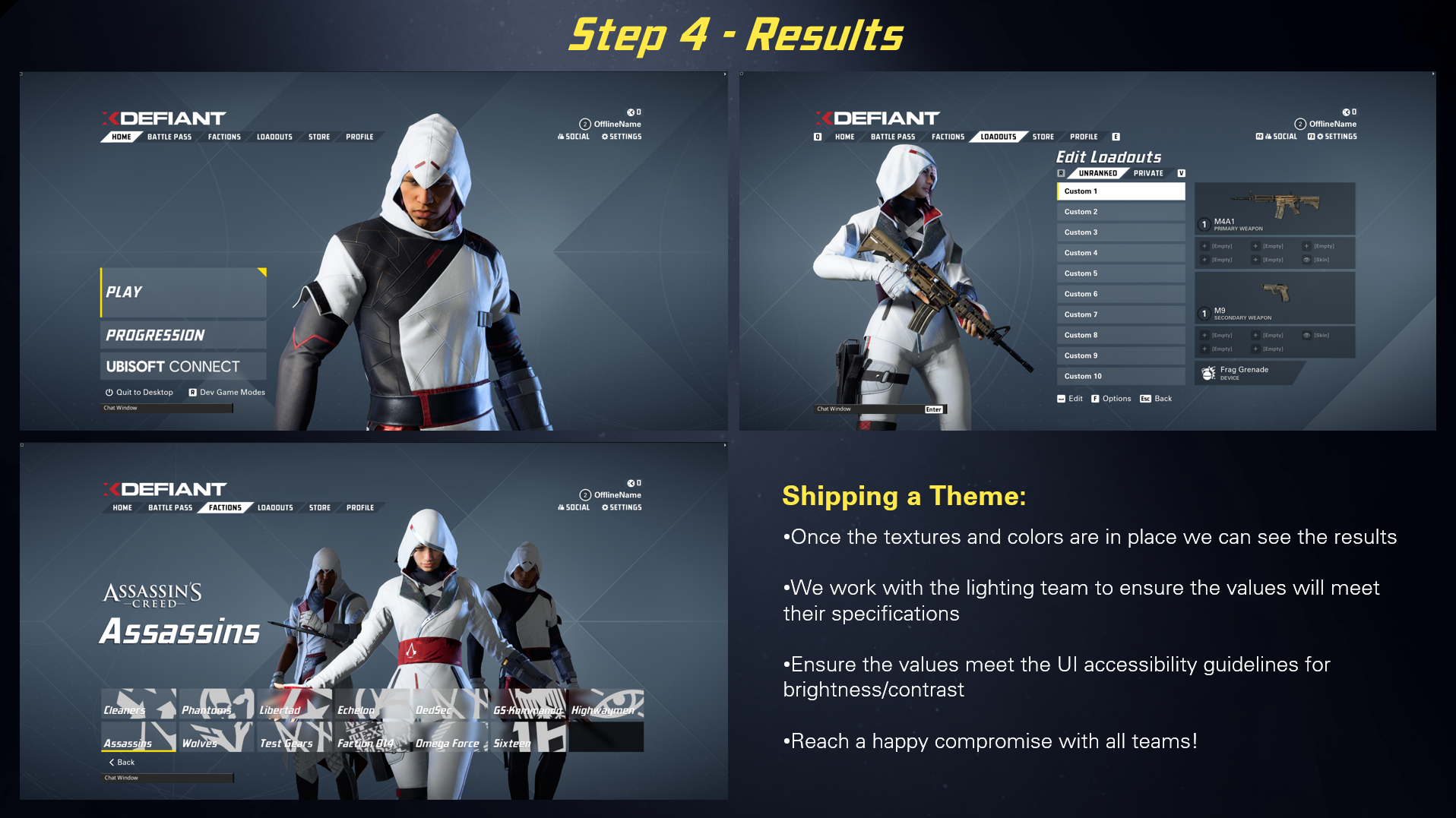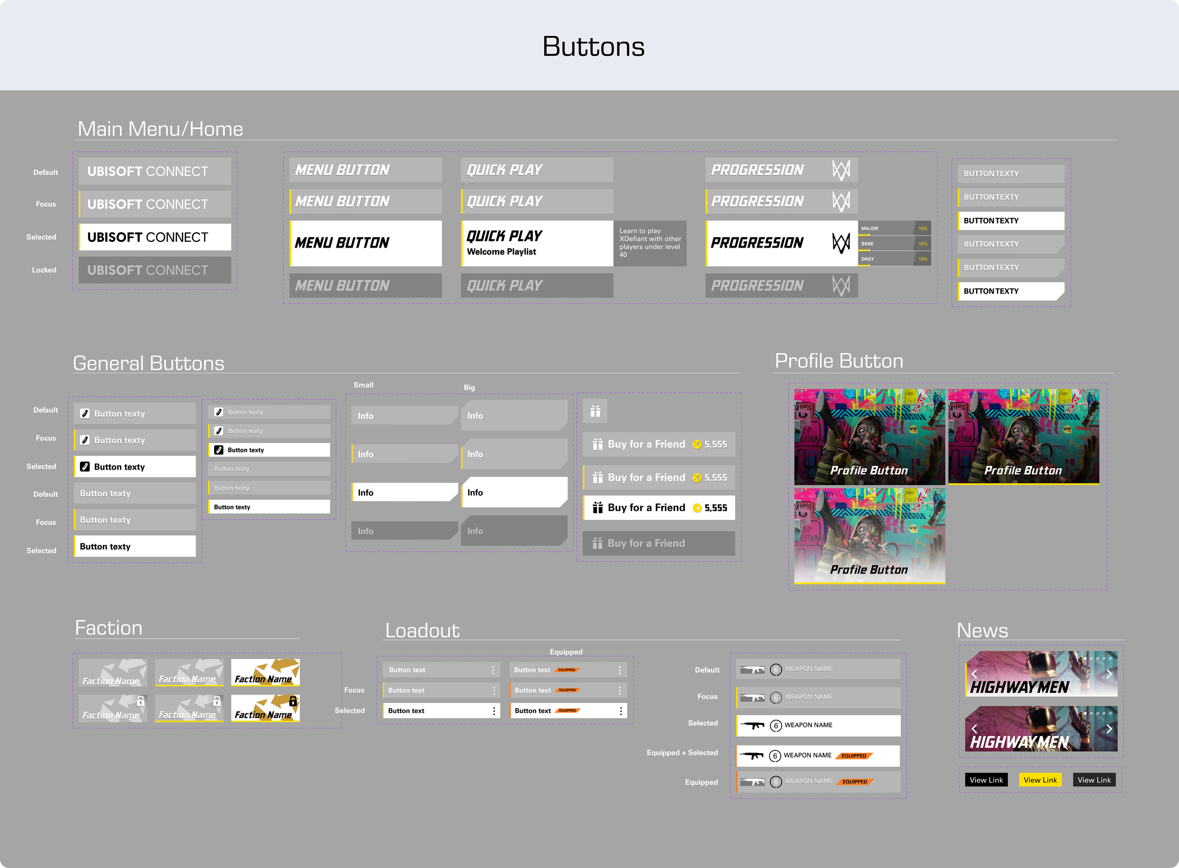The documentation shown below was created in Miro and Figma for the UX/UI team on XDefiant.